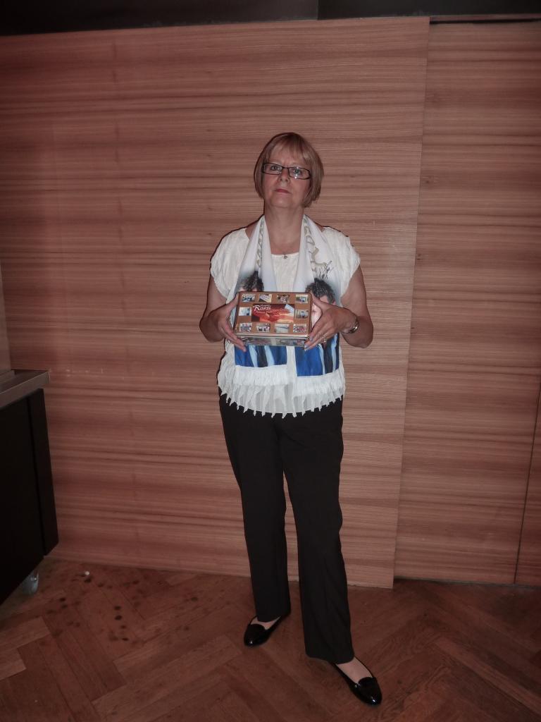 Photo souvenir avec la boîte pour les dons de la Fondation